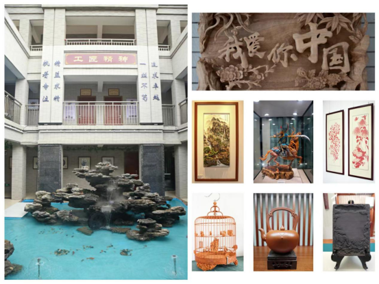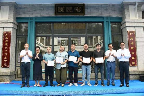 会后,张振飚等参会领导共同为“国匠楼”揭牌,并为田云飞、黄国洪、萧占行、林道文、雷永贵五位工匠大师颁发客座教授聘书。“国匠楼”位于学校清远校区,设有广东剪纸、萧派面塑、沙河鸟笼、英石盆景和茶德红茶五个大师工作室,同时陈设有中国四大名砚之一的肇庆端砚,四大木雕之一的潮州木雕,以及中国非遗传承工艺潮州朱泥壶。通过国匠楼的建设,将国匠大师工作室搬进校园,旨在更进一步拉近国匠大师与师生间的距离,更好地传承工匠精神,分享工匠经历,传授工匠经验,弘扬中华优秀传统文化,为校内师资队伍建设注入源源不断的新动力。