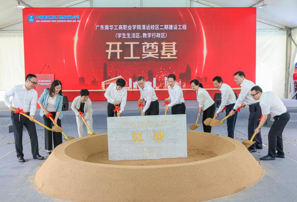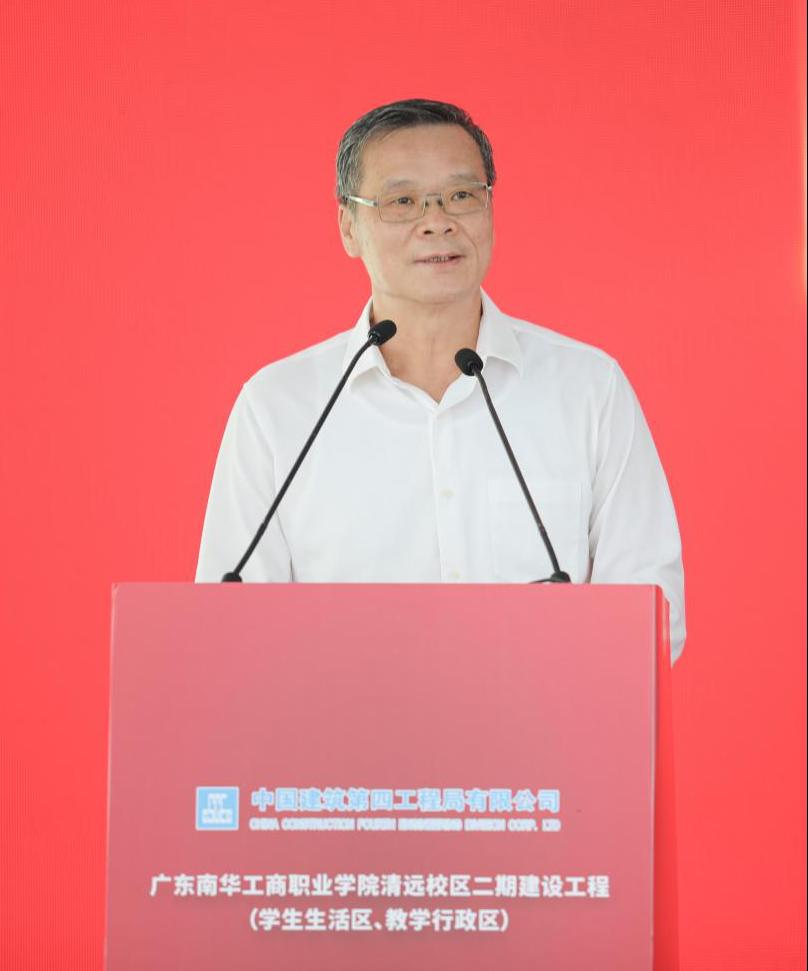 省总工会办公室主任姚文军、组织部部长严壁,清远市总工会党组副书记、常务副主席林闻,中国建筑第四工程局有限公司工会副主席叶鸥,广东省职教城(清远)事务中心主任段习文等参加奠基活动。