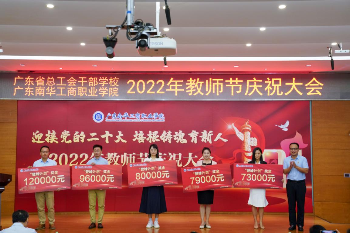 为激励那些在内涵建设中冲锋在前、攻坚克难的教师和团队,本次教师节大会,学校对“登峰计划”业绩突出的教师陈春慧、李婵、廖大强、彭晓丹、谭金凤、杨家成、姚文杰、赵玲霞、周怡燕进行了隆重表彰,“登峰计划”奖金最高得主(累计获得奖金12万元)廖大强老师发表获奖感言。