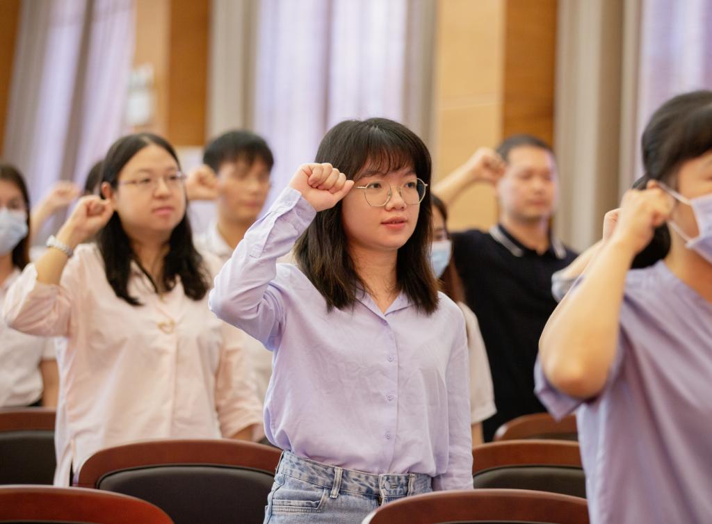 会上还举行了新入职教师宣誓仪式。新教师代表谭淑倩表示,将接过老一辈教育工作者手中的接力棒踏入新征程,与南华共成长,为祖国的教育事业添砖加瓦。