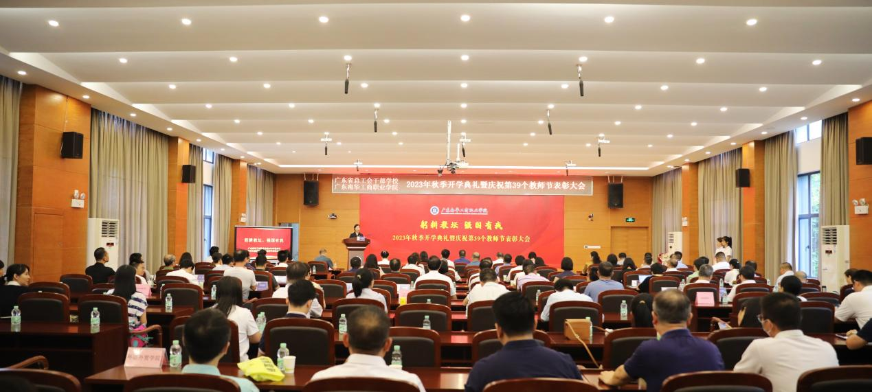 桃李芬芳,教泽绵长。9月8日,我校隆重举行秋季开学典礼暨第39个教师节庆祝大会,表彰先进,树立典型,营造尊师重教的浓厚氛围。学校党委副书记、副校长严新做开学动员讲话,校领导班子成员、教职工代表、荣休教师及全体新入职教师参加大会,会议由副校长王荣光主持。