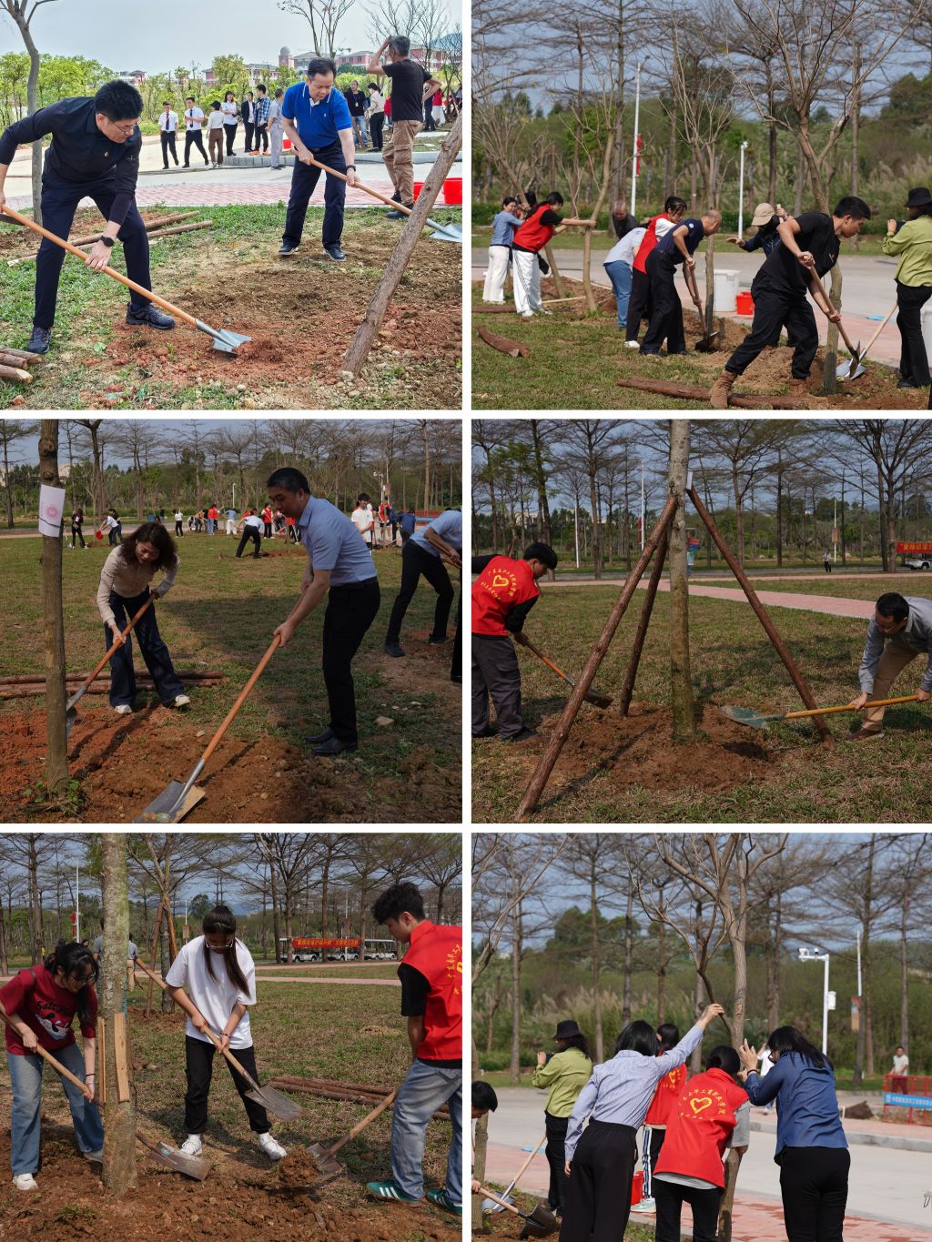 3月29日,广东省纪委驻省总工会机关纪检监察组党支部与我校党委在清远校区联合开展“爱绿植绿护绿兴绿”主题党日植树活动,因地制宜,以实际行动投身绿美广东生态建设。广东省纪委驻省总工会机关纪检监察组长梁小岸,学校党委书记、校长林海及师生党员代表约200人参与本次活动。