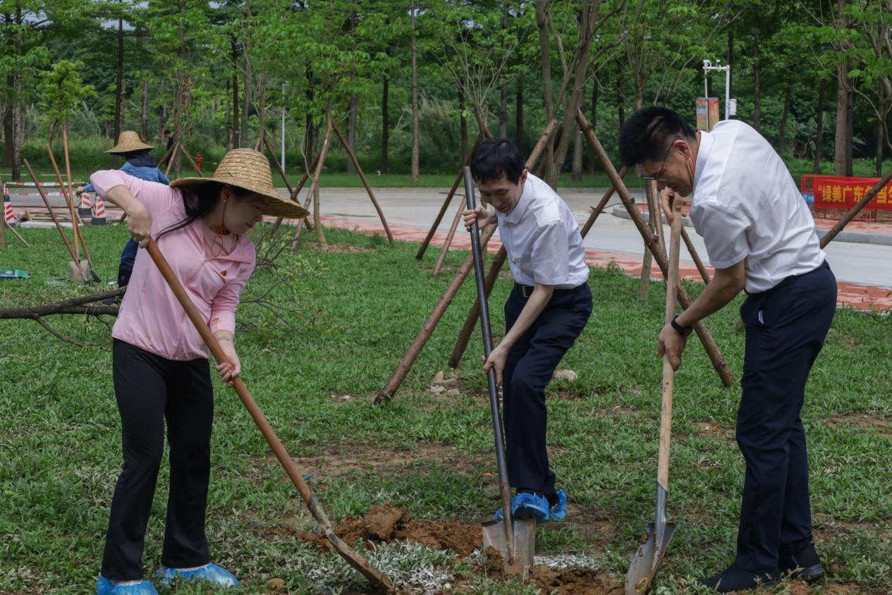 岭南初夏,满目葱茏。绿美广东生态建设是广东生态文明建设的战略牵引,也是关系广东长远发展和民生福祉的重要工程。在清远校区主力军广场,省总办公室、维权工作部、经济工作部、技协中心、女职工部、财务部、省工业工会、省财贸工会党支部与我校党委团结合作,挥锹铲土、扶苗培土、围堰浇水,共植小叶榕、大叶紫薇、细叶榄仁、黄花风铃、木棉、杜英、紫荆树种95棵,用干劲十足的辛勤劳动增厚南华“绿色家底”,践行“绿水青山就是金山银山”理念,为绿美广东生态建设贡献力量。