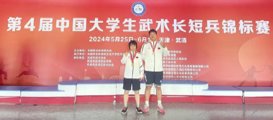 5月25日至6月1日,我校选手蔡梓晴、汪洋在第四届中国大学生武术长短兵锦标赛中分别斩获1金、2铜!