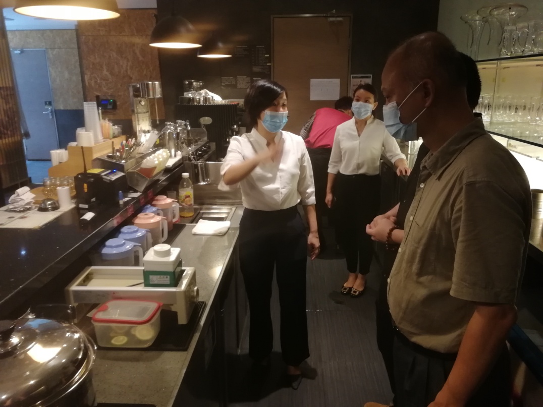 结束探望后,三位教师前往伯顿西餐厅艳阳天店(常平镇),与伯顿公司人力总监陈国凤洽谈,就前期现代学徒制工作做了总结和研讨,特别是新冠肺炎疫情对校企合作各项工作带来的影响,并对接下来的现代学徒制和校外实践教学基地工作做了初步规划。会谈后,教师们就企业推行的全面质量提升“源全系统”进行了现场实效观摩。“源全系统”将作为第二批现代学徒制试点的重点课程内容,为学徒提供“5S质量管理”学习。