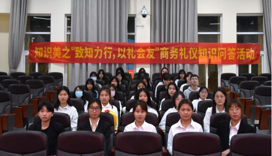 活动期间,学院组织开展了知识美之商务礼仪知识问答活动。“国际社会公认的‘第一礼俗’是什么”“礼仪的首要原则是什么”……在团队答题、个人抢答环节中,同学们通过小组讨论与交流,深入学习了商务礼仪知识,有效增强了同学们对礼仪知识的理解和认识,更在无形中提升自信心和团队协作能力。