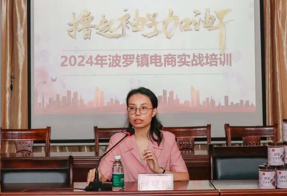7月12日,外语外贸学院学院电子商务专业周持莅、彭韬、毛玲丽三位老师应英德市波罗镇政府的邀请,联合“红心向党,筑梦前行”红心实践服务队在波罗镇政府会议中心进行了一次电商实战培训暨农产品外包装设计授权活动,活动由红心实践服务队指导老师何抒恒主持。首先由波罗镇何夏瑶副镇长致辞,她先感谢了红心实践服务队在波罗镇的帮扶工作,同时,也希望借助本次电商实战培训,南华的老师们能够充分发挥电子商务专业优势与特长,切实解决波罗人民的农产品滞销困境。能够积极地带动波罗镇本地农村产业发展的提质增效,通过培育农村电商“新农人”,实现波罗人向更美好的生活发展。