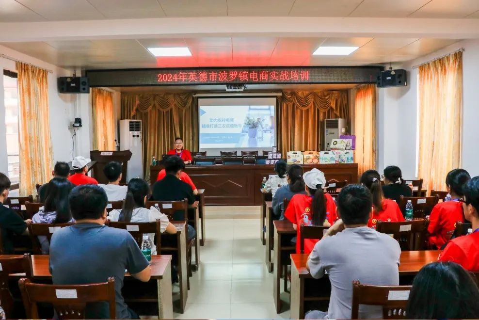 是日下午,电商培训讲座继续进行,由周持莅老师以《新媒体营销与传统电商协同赋能乡村振兴》为题,通过讲述自己实际运营的账号为核心,结合波罗镇农村农业特色,充分解释了传统电商与新媒体营销之间的关系,强调“矩阵式店铺运营”“工作团队搭建”“供应链运作的重要性”“流量投放”“阶段运营”“数据运营”等实操技术技巧的重要性。周持莅老师已经第二次来到波罗镇授课了,深受现场学员喜爱,并碰到一些老熟人,继而进一步交流到当地农户发展的实际情况与困难,并即使为部分农户解决了网上销售账户及运营方面的问题。电子商务对乡村发展尤为重要,能较大限度助力农业经济主体提高收入,是乡村振兴路上的重要推手。为此,外语外贸学院电子商务专业的老师们会继续努力扎根清远市特色农产品市场,充分利用互联网+、短视频运营等方式方法助力农产品的售卖,用电商营销的模式切实帮助当地人民解决农产品滞销问题。