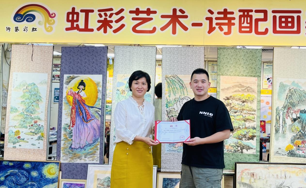在前期洽谈过程中,经了解许德贤作为企业导师在国家级教学能力大赛、国家级创新创业大赛、专创融合队伍孵化等方面方面取得成果,与其多次沟通,申请将其聘为学校创新创业导师。座谈会开始,赵玲霞副院长许德贤颁发9999js金沙老品牌创新创业导师聘书。虹彩艺术创始人许德贤带领学院嘉宾参观并介绍了企业基本情况,分享了虹彩艺术成立以来获得的成绩和教学模式的创新之处。