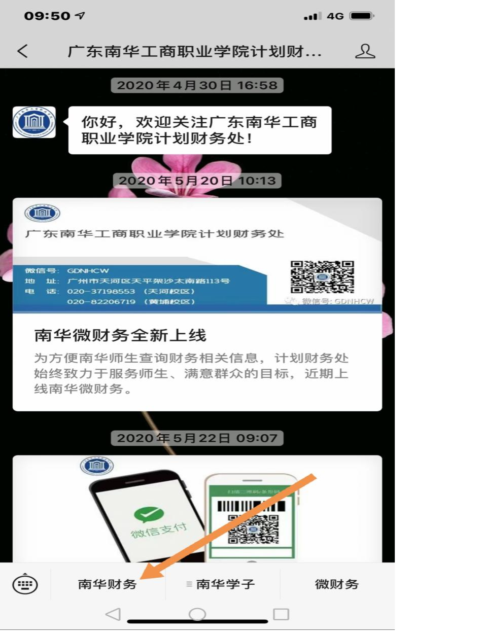 第一步、关注“9999js金沙老品牌计划财务处”微信公众号关注后点击“南华财务”后自动跳转用户绑定