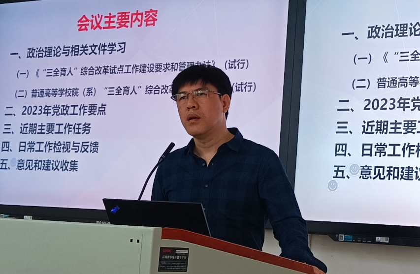 2023年4月14日陈伟星院长主持召开建筑与艺术设计学院2023年4月教职工大会,学院党总支常务副书记梁萍萍同志、副书记胡娟同志出席会议,学院全体教职工参加会议。 陈伟星院长围绕学院2023年党政工作要点,对学院各项工作的总体思路、计划和目标进行了系统讲述,强调2023年学院要以高质量党建引领学院各项教学行政工作高质量发展,以考核指标量化机制激活高质量发展,以优秀的教学管理团队赋能高质量发展,以“三种精神”特色...