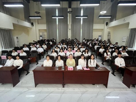 胡娟在致辞中对本次大会的召开表示热烈的祝贺!她对上一届学生会成员的辛勤付出表达了诚挚感谢,充分肯定了他们所取得的成绩。同时,对下一任学生干部成员表达期望,希望能牢记服务同学的宗旨,传承往届的优良作风,不断开拓创新,以高度的责任感和饱满的热情投入工作,为学生会的发展和学校的进步贡献力量。最后要坚持学习,将理论与实践相结合,更好地为同学、学院、学校服务,坚持思想引领,用习近平新时代中国特色社会主义思想凝心铸魂。