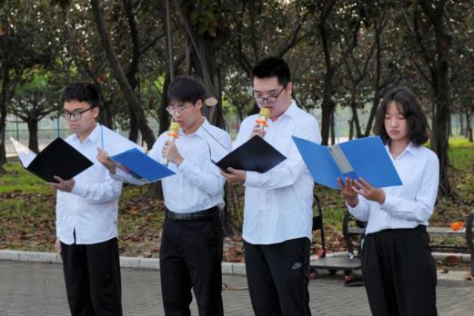 升旗结束后,学生代表罗立钱在国旗下作主题演讲,以新时代青年莘莘学子的姿态呼吁全体同学应坚定理想信念,勇挑新时代重担,以实干彰显初心,以奋进践行使命。紧接着,张鑫浩、何伟聪、殷宇苑、杨振四位同学在国旗下进行“信仰的力量”主题朗诵,感召青年学子坚定信仰,重任在肩,做新时代好青年、不忘初心、奋勇前进,让青春在风雨的洗礼中迎接着曙光的到来。