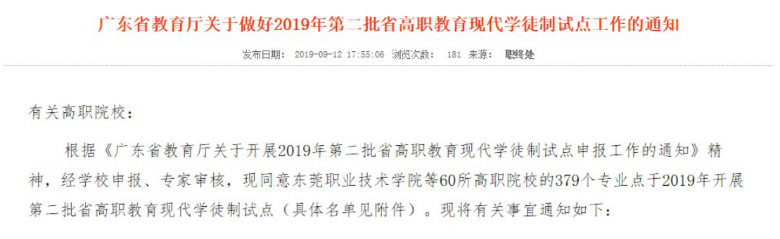 2019年9月12日,广东省教育厅公布《关于做好2019年第二批省高职教育现代学徒制试点工作的通知》,建艺学院建筑装饰工程技术、风景园林设计专业项目获准试点,这是我院深化教育教学实践、提升专业内涵建设取得的创新性突破。