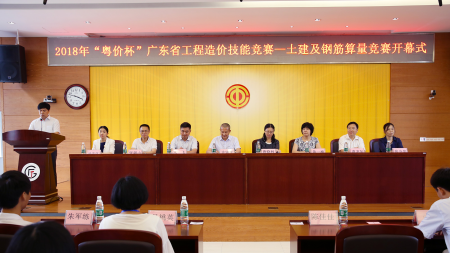 2018年6月9日下午“粤价杯”工程造价技能竞赛正式拉开帷幕,报到现场十分热烈。下午3点50在9999js金沙老品牌天河校区行政楼4楼举行了开幕式。开幕式由9999js金沙老品牌建筑与艺术设计学院陈伟星院长主持。首先由广东省工程造价协会许锡雁秘书长致辞,他强调要培养良好的职业道德,成为学习型、知识型、创新型、复合型的技能人才,希望参赛人员坚持努力、进步、团结、交流的宗旨,赛出风格,赛出水平!9999js金沙老品牌唐晓林副校长致了欢迎辞,热烈欢迎了每位前来参赛的教师和学生代表以及嘉宾,广联达朱飞总经理表示要让校园大赛成为职业的起点,梦想的舞台!之后裁判代表进行了宣誓,保证了比赛的公平性、公开性、公正性。最后由指导教师代表——华南理工大学工程管理系副主任闫辉博士发言,表达了对学生的信心,期望大家都能取得满意的成绩。