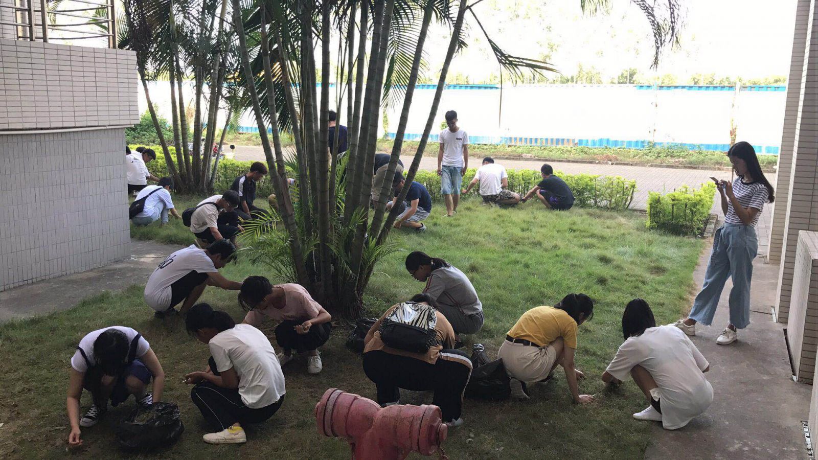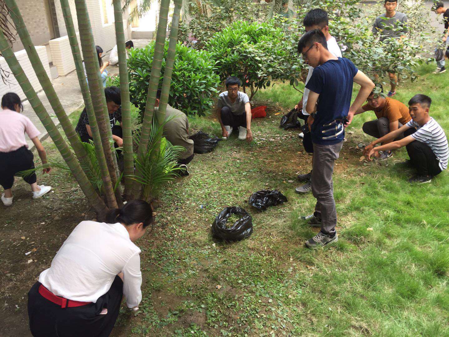 为了迎接党的十九大的顺利召开,美化清远校区环境,建设文明有礼、平安有序的校园,2017年9月22日上午,建艺学院新生辅导员老师与17级新生志愿者在宿舍楼区进行了清理杂草的活动。