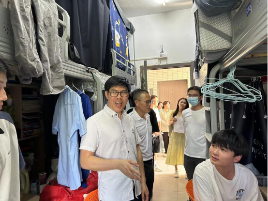 走访过程中,张书记和陈院长询问了同学们暑假的学习见闻情况,听取新学期的计划和打算,耐心解答了同学们提出的学习和生活方面的疑问。他们强调,学习之余也要积极参加实践活动,全方位提高自身能力,锤炼过硬本领。同时,同学们也要做到新学期不放松,严格遵守学校的日常管理和活动管理。辅导员也来到同学们的寝室,亲切交谈,了解其返校情况、寝室卫生和新学期准备工作等,嘱咐同学们在宿舍里相互关心、相互帮助,以崭新的精神面貌投入到新学期。