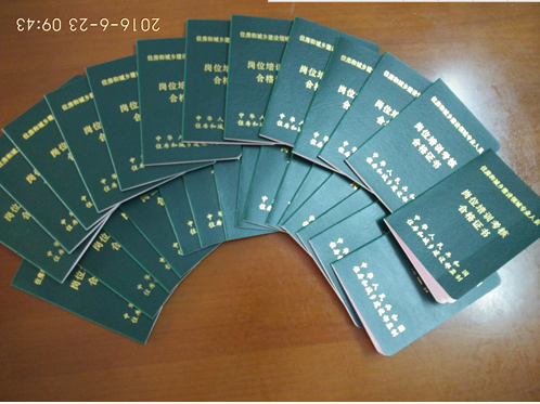 该批学生共报考了建筑工程施工员、市政工程施工员、资料员以及材料员四个考证项目,并在2016年5月28日及29日参加广东省建设教育协会组织并面向在校学生举办的专场统考,通过率达到100%,远远高于广东省内70%的通过率,成绩喜人。该合格证书可作为本人持证上岗及企业申报资质使用。