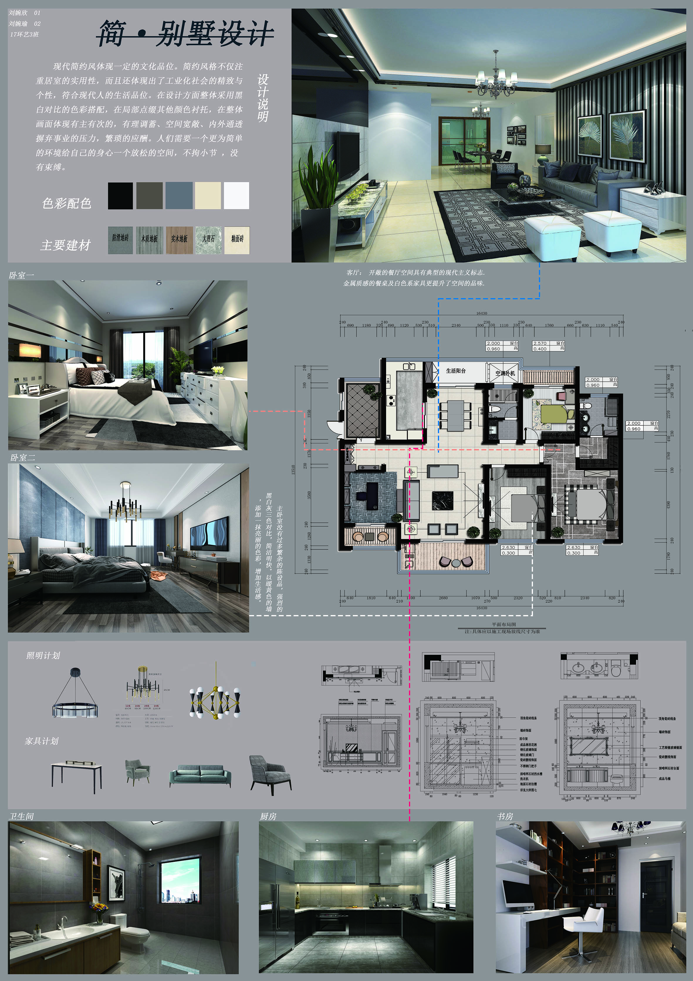 2、室内设计与装饰,掌握室内设计的基本概念、基本要求和基本的设计原则,掌握不同空间的设计方法,通过手绘和电脑辅助设计将设计效果表达出来。