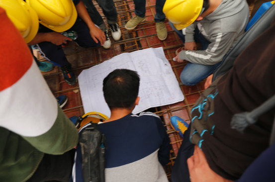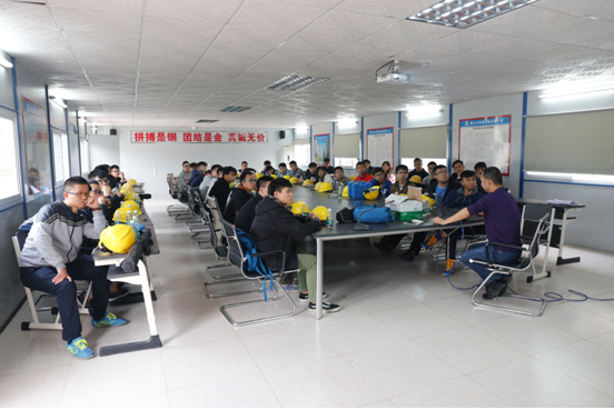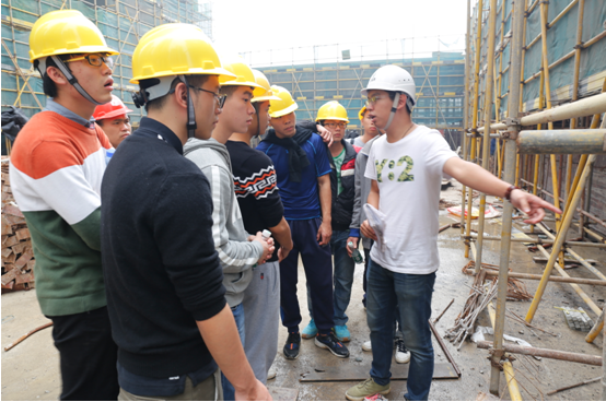 会议结束后按照预定的实训计划展开实训,全班46人分为5个小组,组长分别为南华工商学院监理教研室主任杨涛老师,广东重工建设监理有限公司总监代表万子恒、专业监理工程师黎凯艺、钟毅、杨涛老师、梁文育负责施工现场的参观及讲解工作,同时负责好安全工作,处理可能发生的紧急事件。5个小组分开并交叉进行实训。