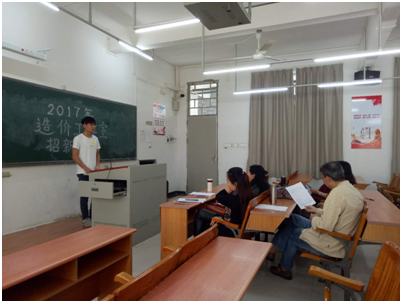 本次招新报名踊跃,人数共为91人(2016级9人,2017级82人)。造价工作室的面试分为两轮进行,第一轮是由工作室中的部分原成员为面试官,于2017年11月6日分别在教学楼222、223和实验楼417、418进行。第二轮由吴桃英、王淑苹、梁文育、李佩和王奕等专业老师进行一对一的面试,于2017年11月10日在办公室410和教室223、223分别进行。每位参与面试的同学均向指导老师展示出自己最精彩的一面,积极争取成为新的一员。