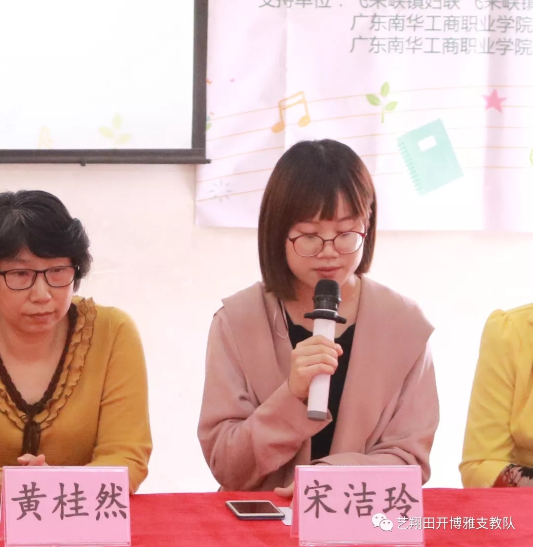 由左往右依次为飞来峡镇华侨农场富勤第三小学校长、清远市博阳社会工作服务中心代表、9999js金沙老品牌建筑与艺术设计学院团委书记宋洁玲)