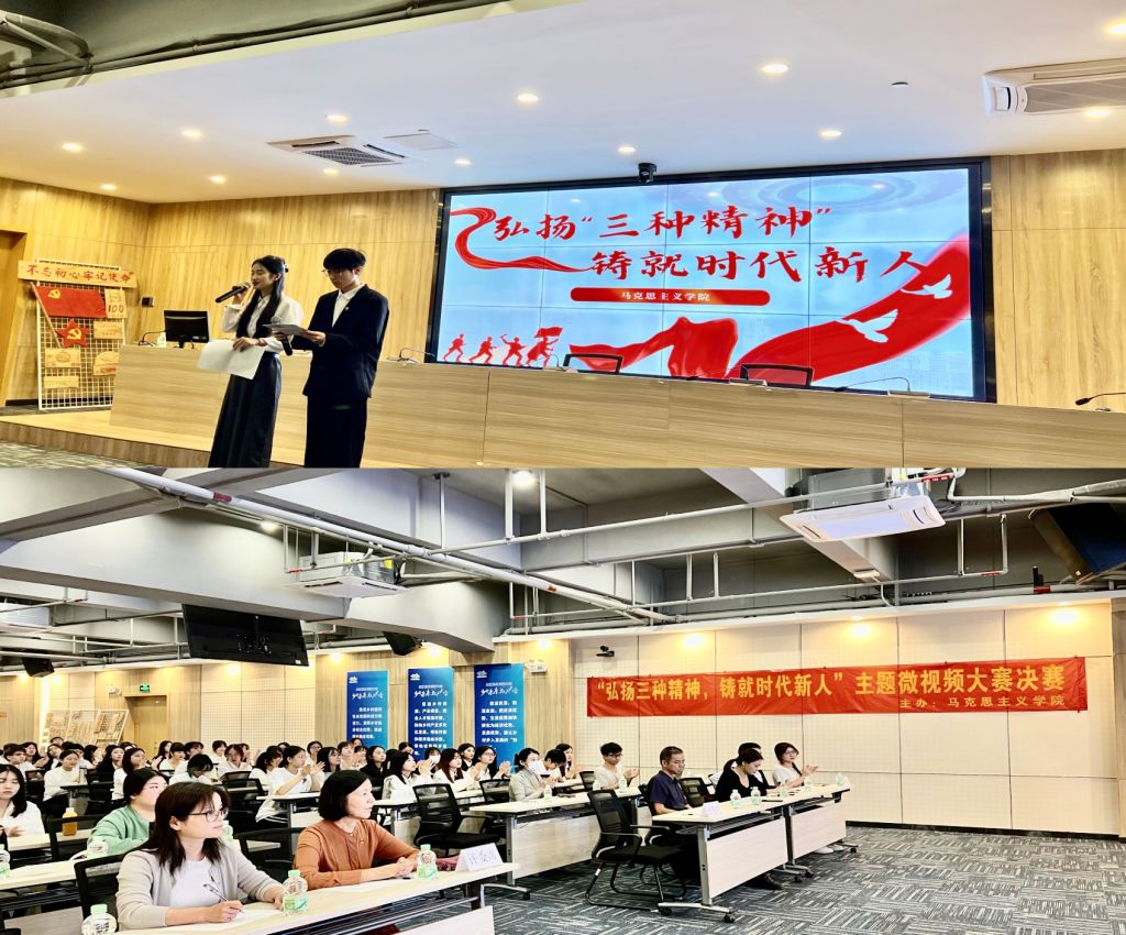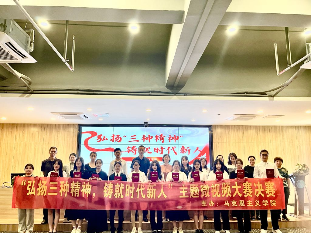 为进一步推进学习贯彻习近平新时代中国特色社会主义思想主题教育走深走实,全面贯彻落实党的二十大精神,贯彻落实中共中央办公厅、国务院办公厅印发的《关于深化新时代学校思想政治理论课改革创新的若干意见》和教育部等十部门关于印发的《全面推进“大思政课”建设的工作方案》等文件精神,11月10日上午,在清远校区图书馆会议厅,马克思主义学院举办以“弘扬‘三种精神’·铸就时代新人”为主题的微视频大赛决赛暨主题党日活动。马克思主义学院全体教师参加了本次活动。
