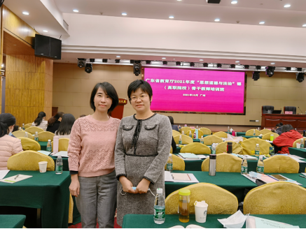 由广东省教育厅主办、广州番禺职业技术学院承办的2021年度广东省高职院校“思想道德与法治”课骨干教师培训班于10月22日-23日在广州市广轩大厦举行,我校马克思主义学院吴慧燕老师和刘丽霞老师参加了此次培训。