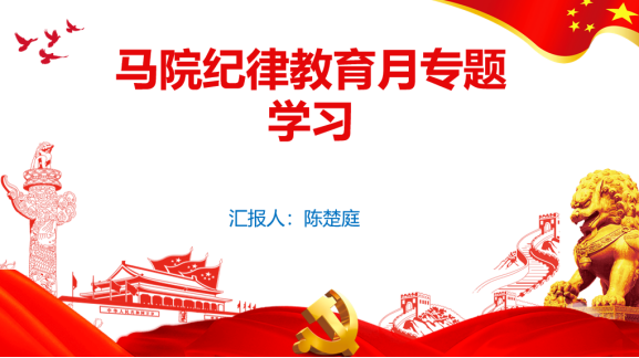 专题学习由支部纪检委员陈楚庭同志围绕党的六大纪律展开。依次阐述了党的政治纪律、组织纪律、廉洁纪律、群众纪律、工作纪律、生活纪律的内涵,并辅之以各领域的典型案例进行剖析,分析原因。在此基础上,陈楚庭同志还结合《新时代高校教师职业行为十项准则》谈了师德师风建设的心得体会,强调教师是人类灵魂的工程师,是人类文明的传承者,思政课教师尤其应当牢记使命、不忘初心,要有热爱教育的定力和淡泊名利的坚守,真正把教书育人和自我修养结合起来,《十项准则》就是对高校教师的警示和提醒。