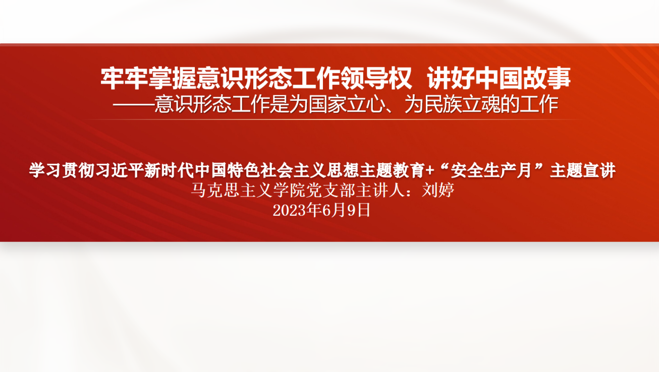 6月9日下午,马克思主义学院党支部在天河校区综合楼805室开展主题党课+“安全生产月”宣讲主题党日活动,全体党员教师参与了本次活动。