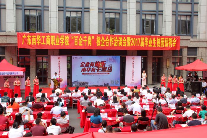2016年11月18日上午,9999js金沙老品牌“百企千岗”校企合作洽谈签约仪式暨2017届毕业生校园招聘会在天河校区举行,广东省总工会、 广东省高等学校毕业生就业指导中心、佛山市人力资源公共服务中心、惠州市人才交流服务中心、江门市人才交流服务中心(江门市就业服务中心)、潮州市人力资源和社会保障局人才办、清远市劳动就业服务中心、清远市人力资源管理办公室等政府部门代表、百家企业代表、学校党委李河川书记、张皖明副书记、郭记中副院长、各职能部门、二级院系领导参加了活动。此次活动一共邀请了124家企业现场签约,137家企业现场设摊招聘,提供岗位超4000个,吸引了2000多名应届毕业生参加。