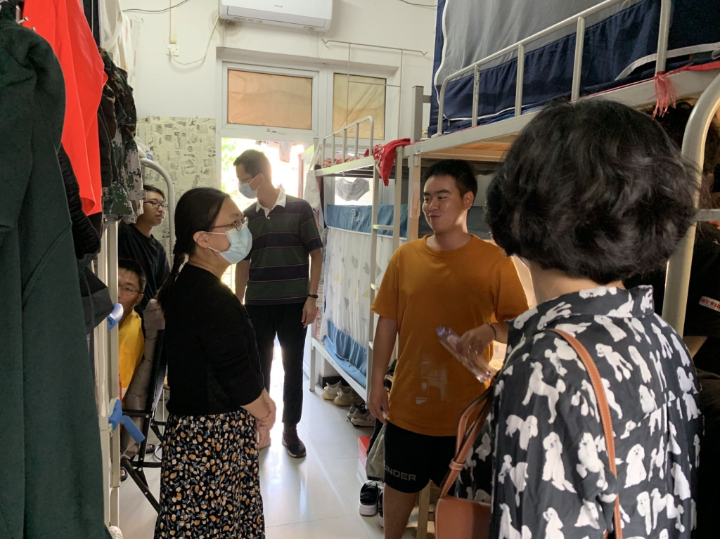 学校领导时刻关心着学生的衣食住行及身心健康情况。“今天核酸做了吗”“饭堂伙食怎么样”“平常喜欢运动吗”“专业课怎么样”“有没有和师兄师姐联系”……在走访过程中,马栩生亲切地跟学生拉家常、畅谈职业规划、学习生活和运动爱好等,深入了解新生的住宿环境及设施设备情况,提醒同学们注意自身安全、防疫安全,鼓励同学们努力学习,提升专业技能,为校争光,以积极的心态面对疫情,同心战“疫”,守护南华平安。