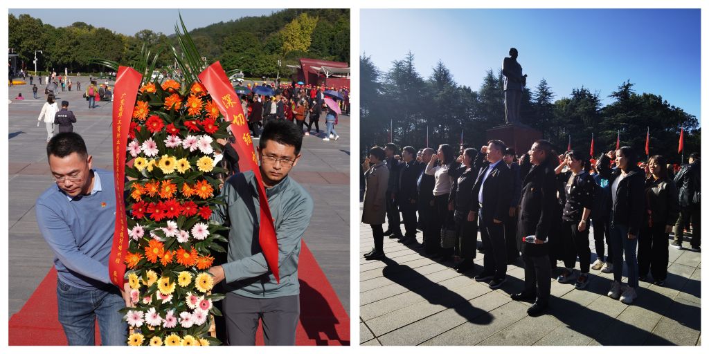 (在毛泽东广场敬献花篮、重温入党誓词)