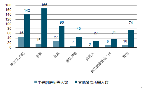 目前餐饮工业化趋势明显,对规模、品牌、品质的要求不断提升,对中央厨房的需求在加大。中央厨房在用工上区别于餐饮门店主要体现在两方面:一个方面是中央厨房的用工工种更集中于粗加工、切配、分装方面,此由其功能决定;另一个方面是中央厨房无需负责服务,学历集中在高低两端,因此“高中、中专、技校”这一中端水平的学历占比较少。