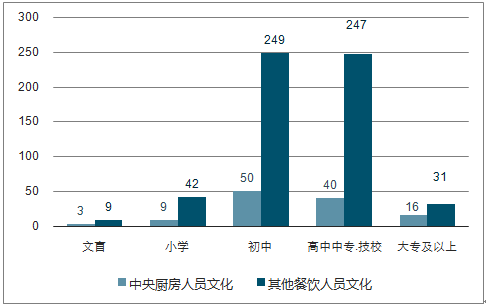 中央厨房与其他餐饮单位从业人员的文化程度对比图