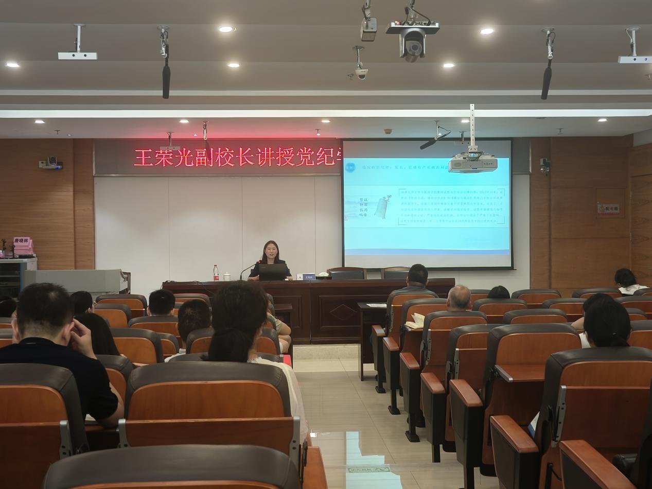 6月25日上午,学校党委委员、副校长王荣光在天河校区培训楼阶梯课室讲授党纪学习教育专题党课,文化旅游学院党支部、应用法学与公共事业学院党支部、数字创意设计学院党支部、培训教研党支部全体党员参加。 党课现场本次专题党课从认识《条例》修订的背景、把握《条例》修订的主旨要义、严格执行和维护党的纪律三方面展开,引导全体党员认真学习领悟《中国共产党纪律处分条例》。王荣光从纪律规矩意识淡薄、“四风”问题禁而...