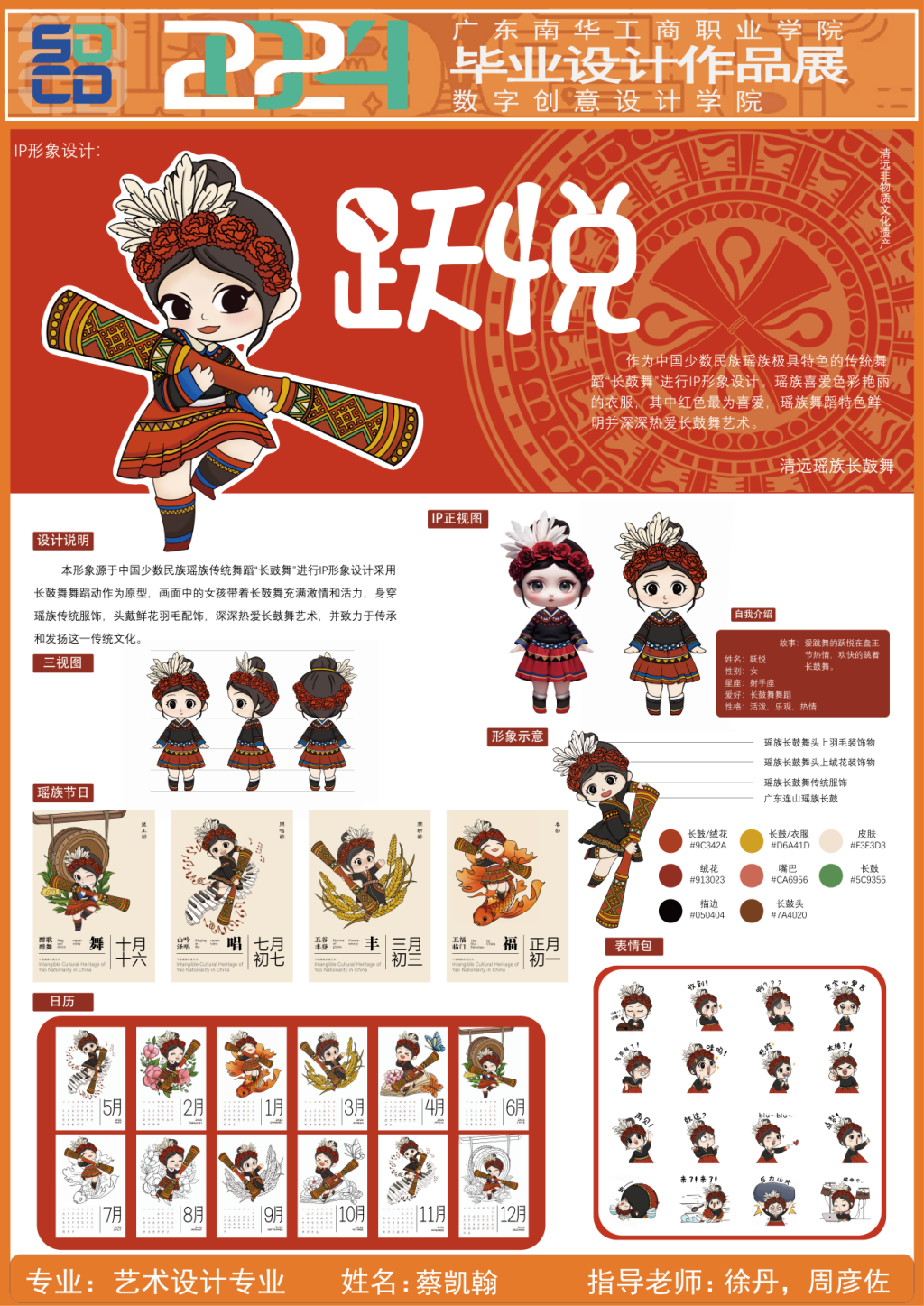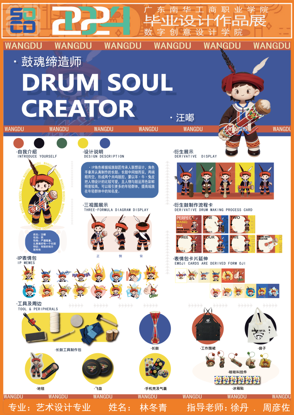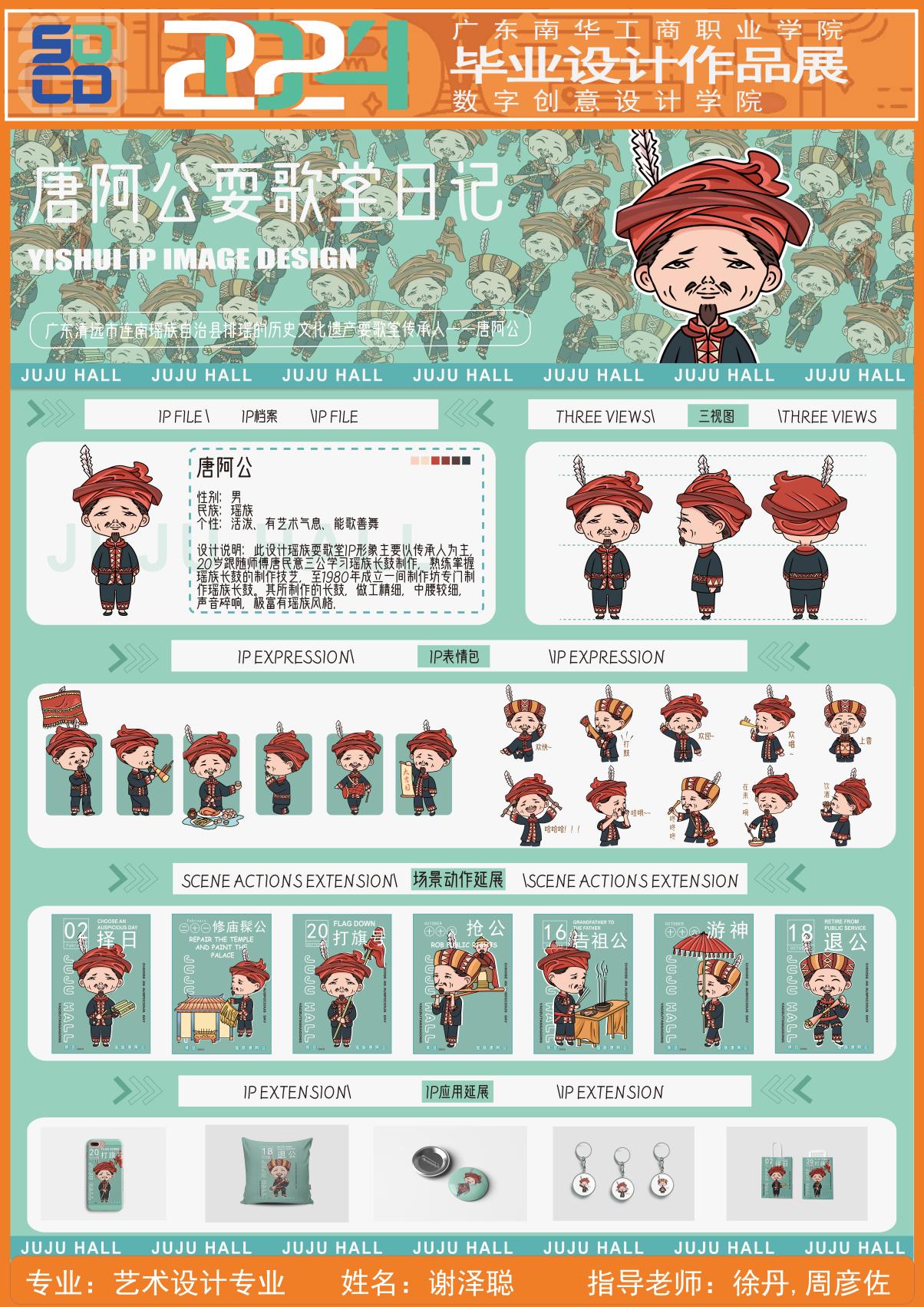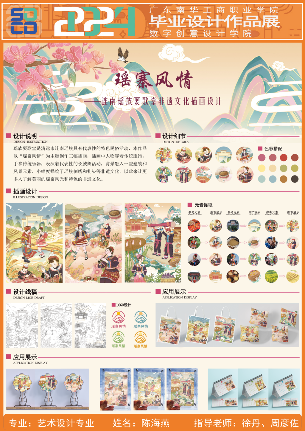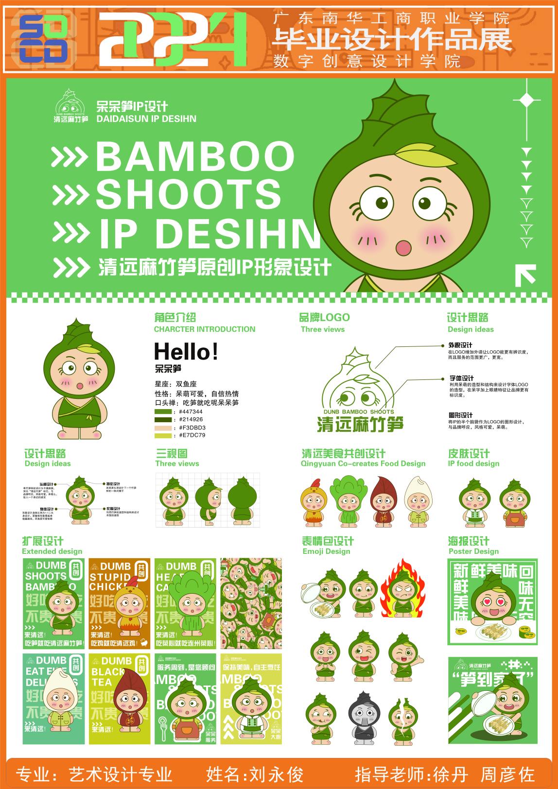 今年,艺术设计专业毕业设计作品紧密依托清远丰富的自然文化资源,聚焦“清远五大百亿产业”农产品和历史悠久的非遗文化,,深入挖掘并诠释了清远特色农业的精髓与非遗文化的深厚底蕴。同学们通过现代设计语言,将传统农产品、古老的非遗文化转化为一系列鲜活、富有感染力的IP形象,不仅赋予了清远文化新的生命力与故事性,更为清远文化的传播搭建了新的桥梁。