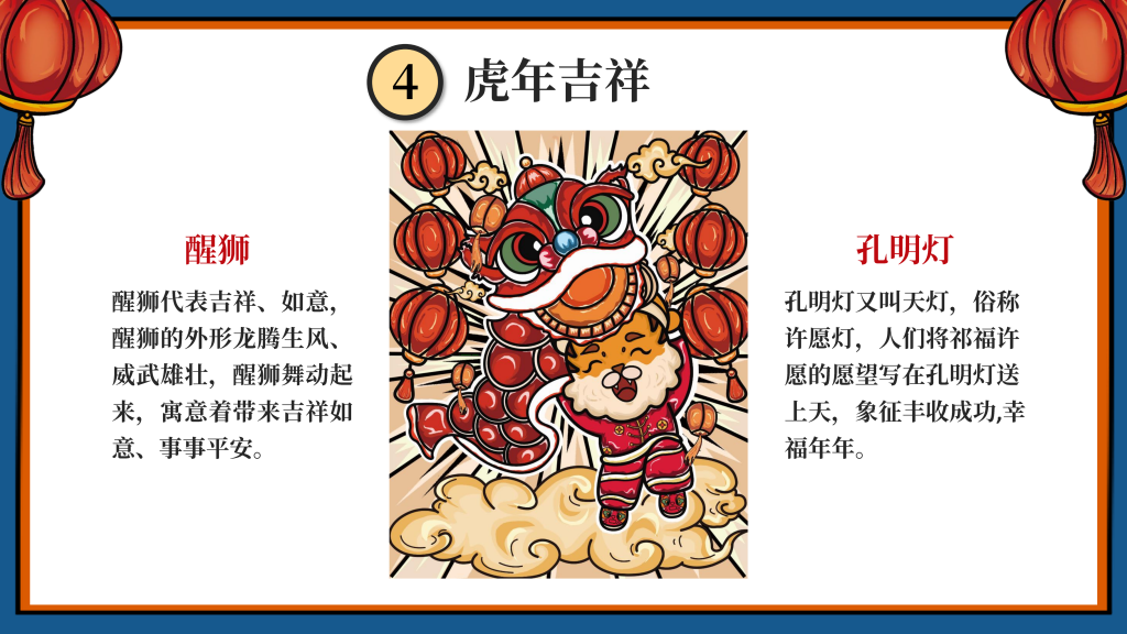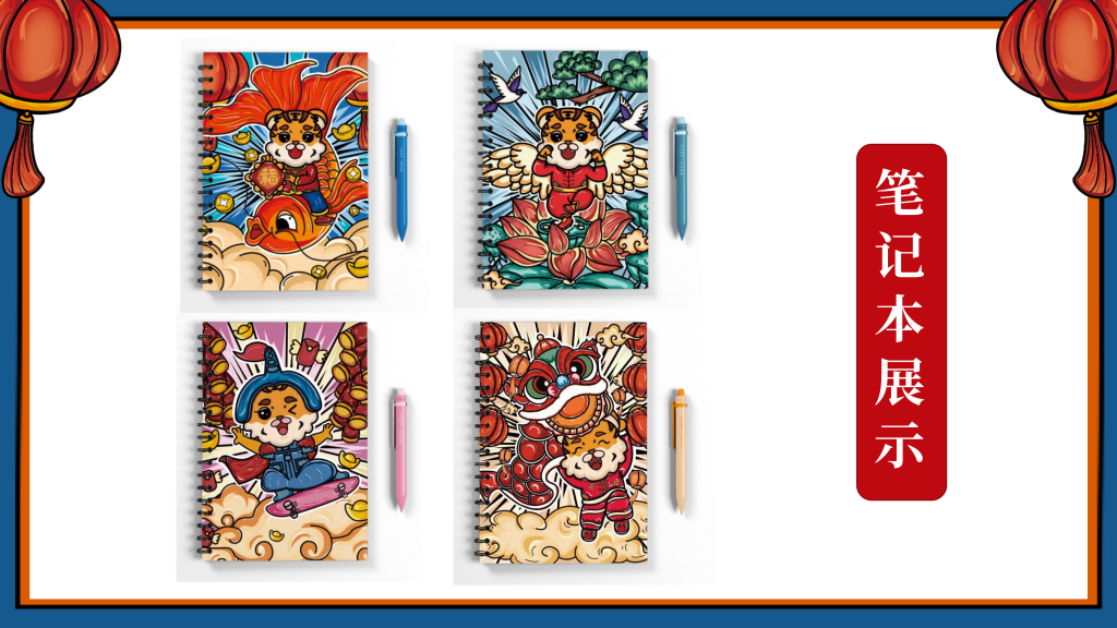 我们采用了国潮的设计风格,以“新年”为主题,设计了一只有趣的“虎”IP形象,挑选了4个的带“虎”字的有美好寓意的成语作为插画的主题组成一系列插画,即:如虎添翼、虎虎生威、虎年吉祥、萌虎送福,用中国传统的吉祥美好象征寓意的元素,搭配丰富的色彩+双重阴影,使画面更加丰富,通过大胆的配色,新颖的方式表现“新年”,传递“喜庆”。