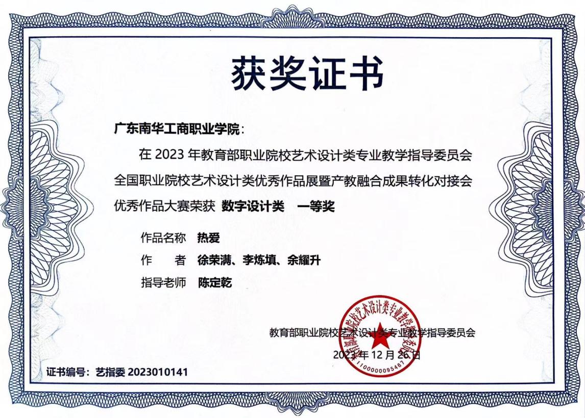 2023年教育部职业院校艺术设计类专业教学指导委员会全国职业院校艺术设计类优秀作品展暨产教融合成果转化对接会优秀作品大赛一等奖