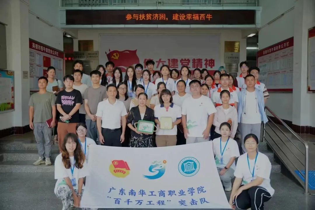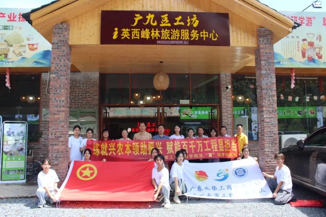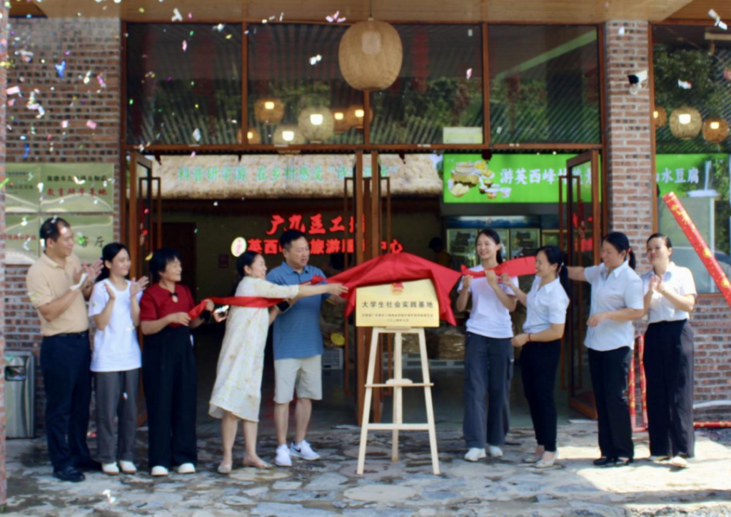 7月21日,豆“富”筑梦实践突击队联合清远市广九食品有限公司(下称“广九食品”)举行“携手育人双赋能,助力‘百千万工程’”主题座谈交流会暨“大学生社会实践基地”揭牌仪式。英德市九龙镇副镇长朱光亮,广东省劳动模范、广东省三八红旗手、清远市农业企业家协会党支部书记兼秘书长、清远市农业品牌促进会执行秘书长陈晓懿,广九食品创始人成玉莲,我校外语外贸学院团委副书记唐嘉敏一同揭牌。