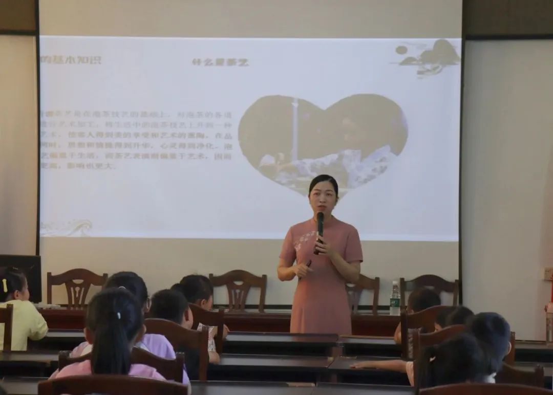 为积极弘扬中华优秀传统文化,深入践行社会主义核心价值观,用劳模精神感召人、用劳动精神培养人,用工匠精神铸造人,7月15日,“助乡圆梦”服务实践队特邀国家一级茶艺技师、国家一级评茶员、广东省劳模张扬娣老师来到课堂,为孩子们上了一场主题为“泡一杯好茶”的茶艺课。
