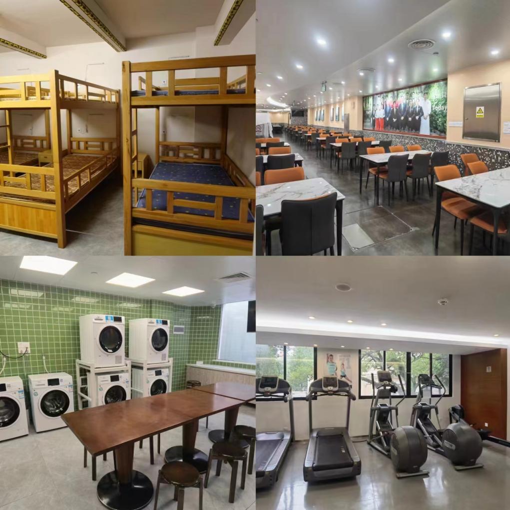 为了更全面地了解宾馆的工作环境和员工生活条件,谭副院长在宾馆领导的陪同下,参观了后勤服务中心、员工宿舍、饭堂以及员工健身房等设施。高标准饮食条件和人性化设计的生活设施将为校企合作提供了有力的保障条件。