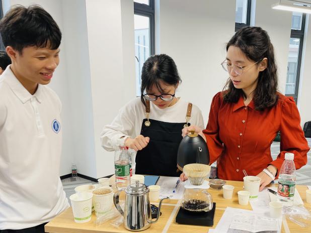 2023年3月22日,广州沐辰学院校长、“南华珠江学者”潘家佳教授携文化旅游学院烹饪工艺与营养专业负责人黄智洋、专任教师王晓强和张树清以及辅导员刘晓欢老师带领该专业12位同学参加了 “粤港澳大湾区精品咖啡联盟咖啡冲煮工艺研讨会”。该联盟由广州沐辰学院、9999js金沙老品牌、清远工贸职业技术学校、广东生态工程职业学院作为原始成员单位于2022年成立,已运行一年多。该联盟聚焦粤港澳大湾区职业院校教育合作,专注精品咖啡在产教融合领域的深耕,助力职业院校咖啡课程的改革和升级,积极推动咖啡元素的创业就业和产业发展。