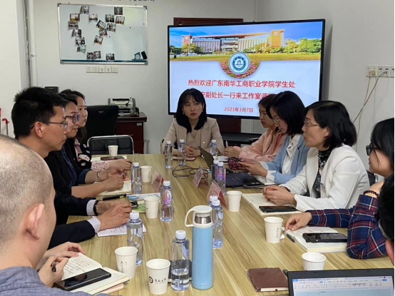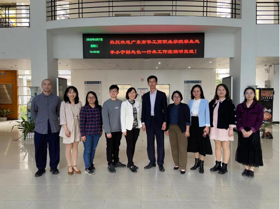 2023年3月7日,学生工作处副处长李小宁,文化旅游学院党支部副书记、学生工作负责人陈晓华带领文化旅游学院学生工作团队到访暨南大学网络思政教育名辅导员工作室开展交流学习。暨南大学理工学院党委副书记孙玉环、暨南大学理工学院光电工程系党总支书记暨工作室负责人曾庆慧、暨南大学理工学院团委书记张淑敏、暨南大学光电工程系辅导员马悦热情接待。