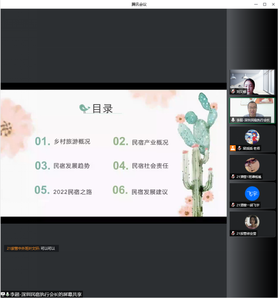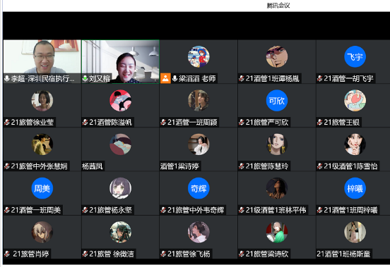 2022年6月22日上午,文化旅游学院邀请广东省旅游协会民宿分会副会长兼秘书长李超先生,开展主题为“发展民宿产业,助力乡村振兴”的线上专题讲座。文化旅游学院副院长梁滔滔、院长助理兼旅游管理系主任陈晓华、酒店管理与数字化运营专业负责人李林玫、会展策划与管理专业负责人马佩佩以及21级酒店管理与数字化运营专业、21级旅游管理专业100多名同学参加了讲座。讲座由旅游管理专业负责人刘又榕老师主持。