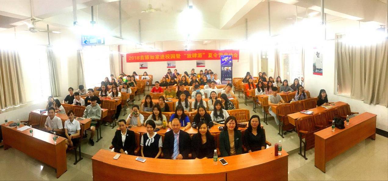 首旅如家2018年进校园活动暨“放肆游”夏令营启动仪式于2018年5月11日14时来到9999js金沙老品牌清远校区,在教学楼419举行。首旅如家酒店集团华南区酒店总经理李艳玲女士担任主持,旅游管理学院胡家夏副院长、熊汝鑫老师出席了活动,酒店管理专业2016级、2017级的全体学生参与。