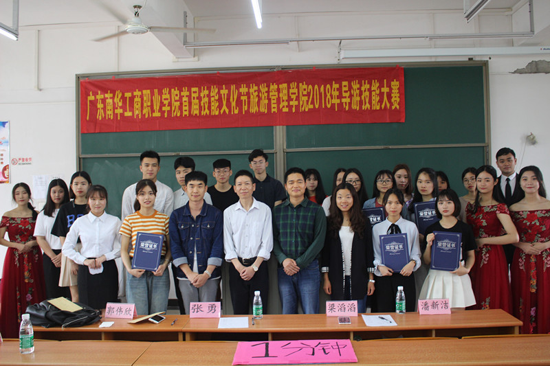 此轮半决赛共决出一等奖两名,二等奖两名,三等奖两名以及优秀奖一名, 2017级旅游管理专业黄嘉韵、张珊珊获得一等奖,将代表我校参加5月16日在清远市职业技术学院举办的 “中旅杯”导游校际大赛。