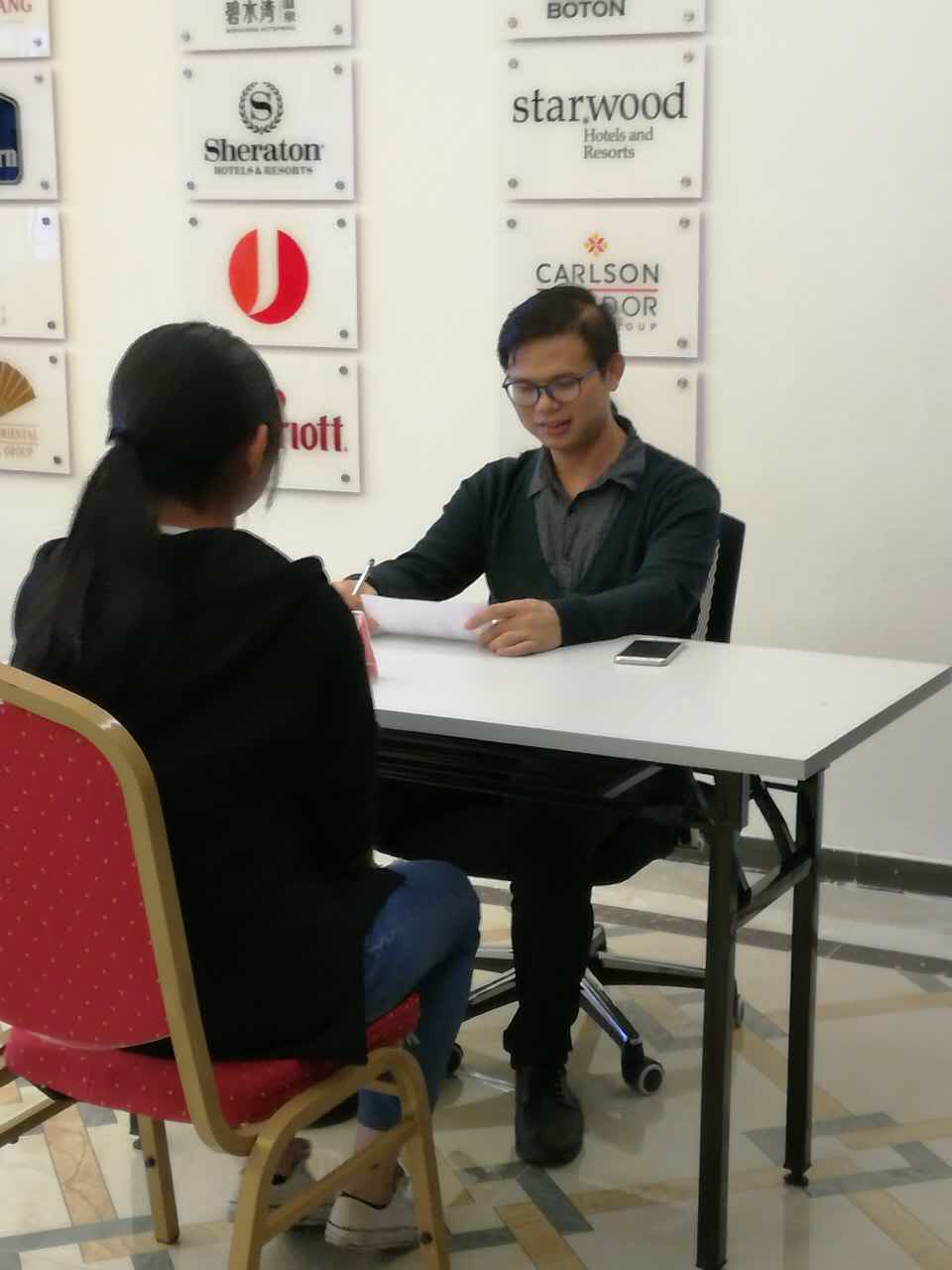 本次面试由桃花湖旅行创始人兼CEO刘荣先生以及桃花湖旅行运营总监何金健先生亲自担任面试官。“你是什么星座?你最想去哪个国家旅行…….”面试官有趣的问题拉近了与学生的距离,面试在愉快的气氛中进行。面试结束后,两位面试官均表示,今年的同学们表现较去年的同学更为大胆,更有创新精神,更具批判性思维。