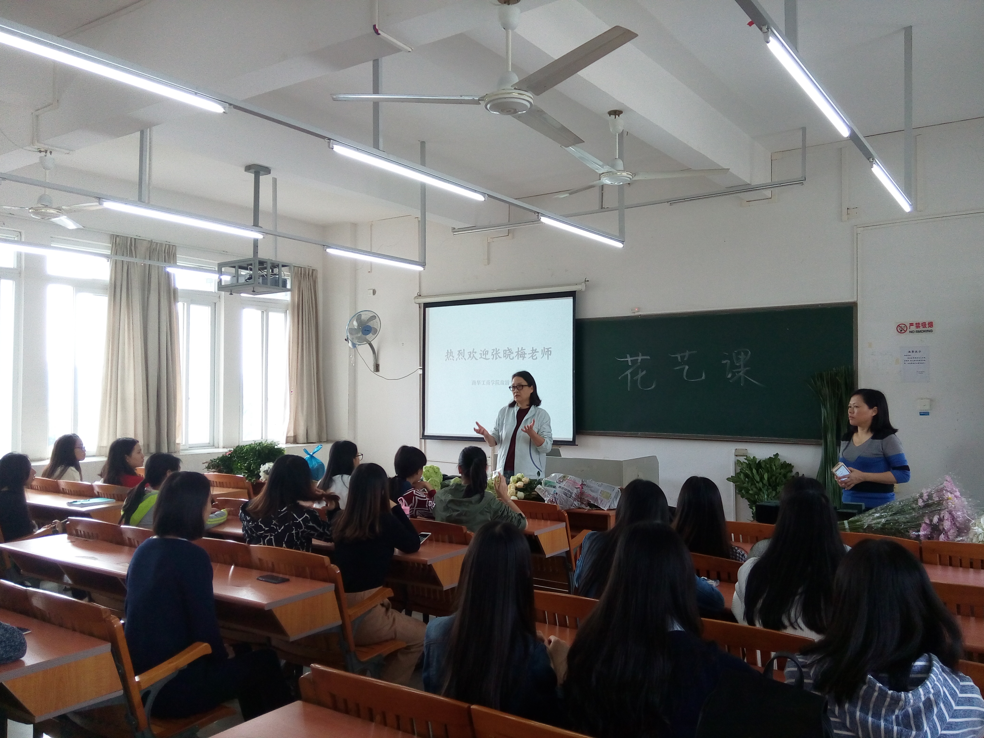 为了更好地培养学生优雅高尚的情操,提升生活品位,丰富实践技能,12月3日下午3时,旅游管理系特邀白云国际会议中心工会主席张晓梅女士来我校清远校区开展花艺课。旅游管理系胡家夏主任、熊汝鑫老师、黄隽老师一同旁听,三十多名报名参加的学生到场学习。