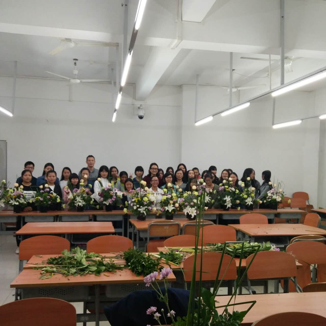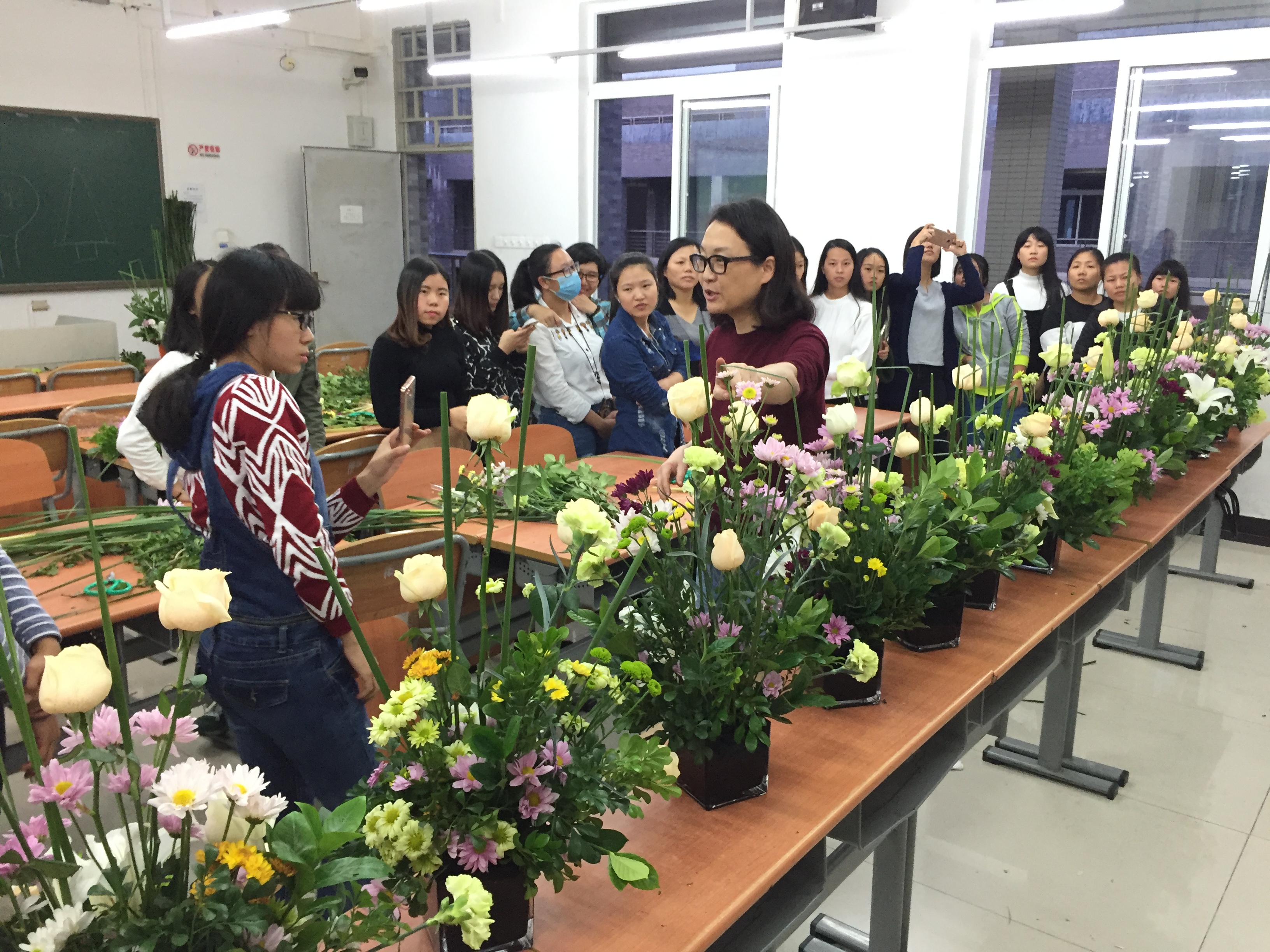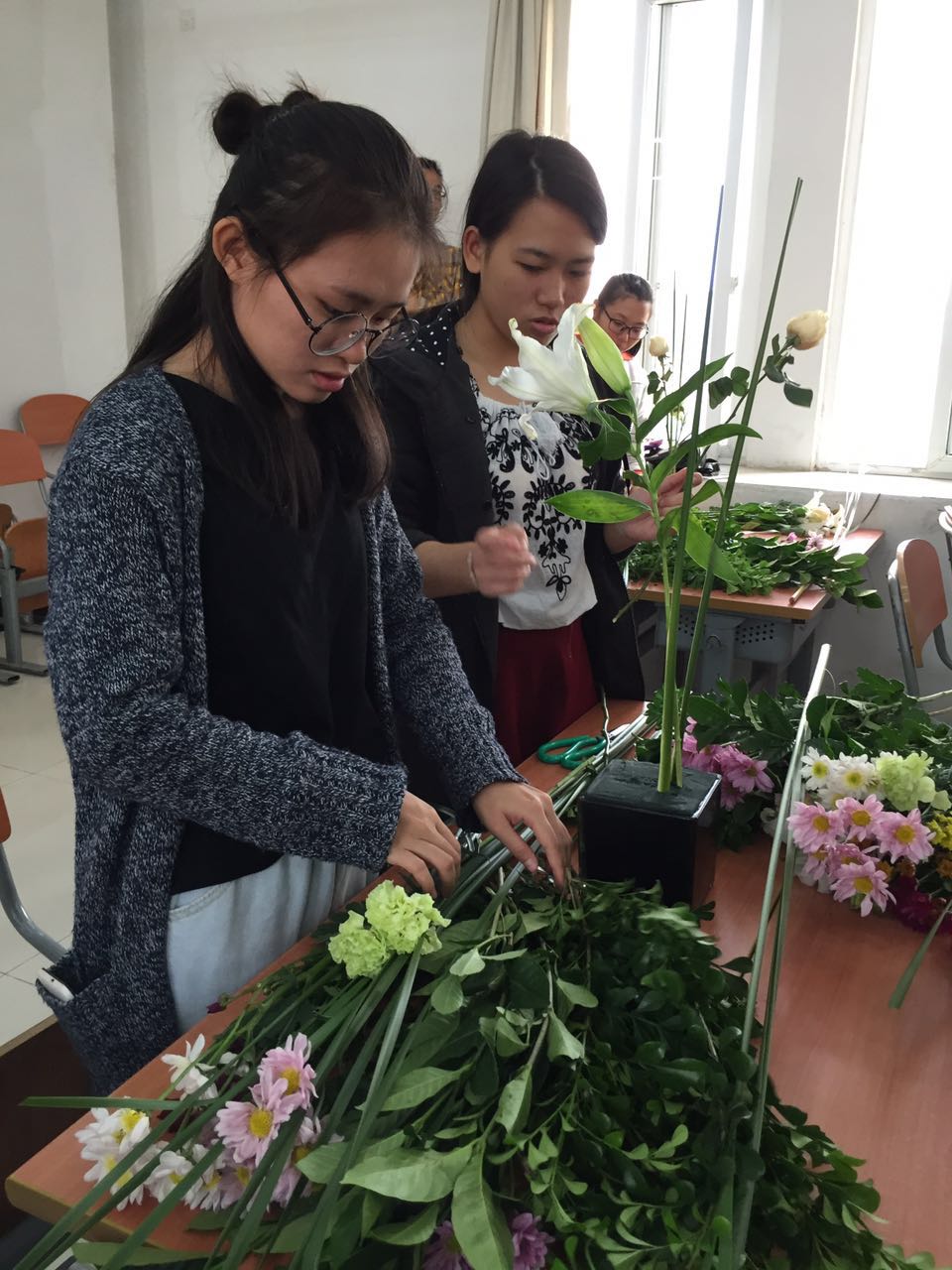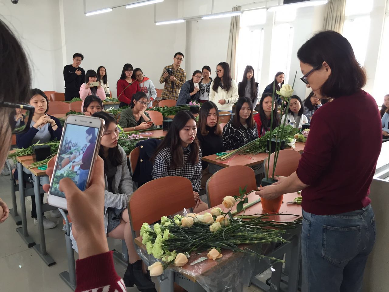 花卉艺术是人们表现自然的生命、展示自然的魅力以及人的内心世界对自然、人生、艺术和社会生活体悟的媒介,是美化生活的一种方式。旅游管理系重视培养学生全方面的素养,特邀专家开展花艺课,借助于自然界的花草,对学生进行修身养性、陶冶情操的培养。